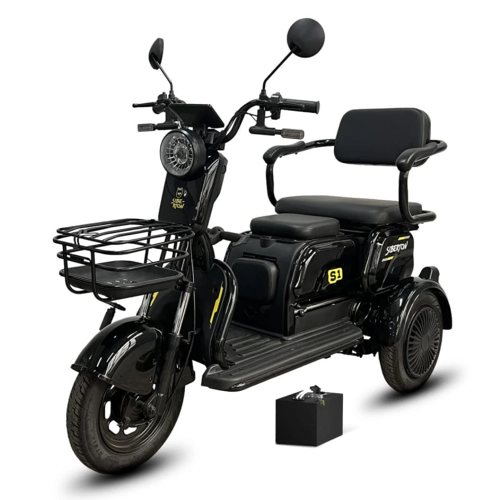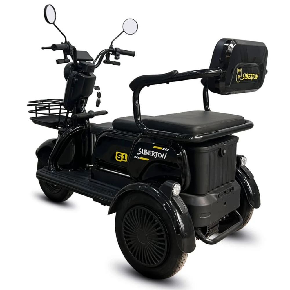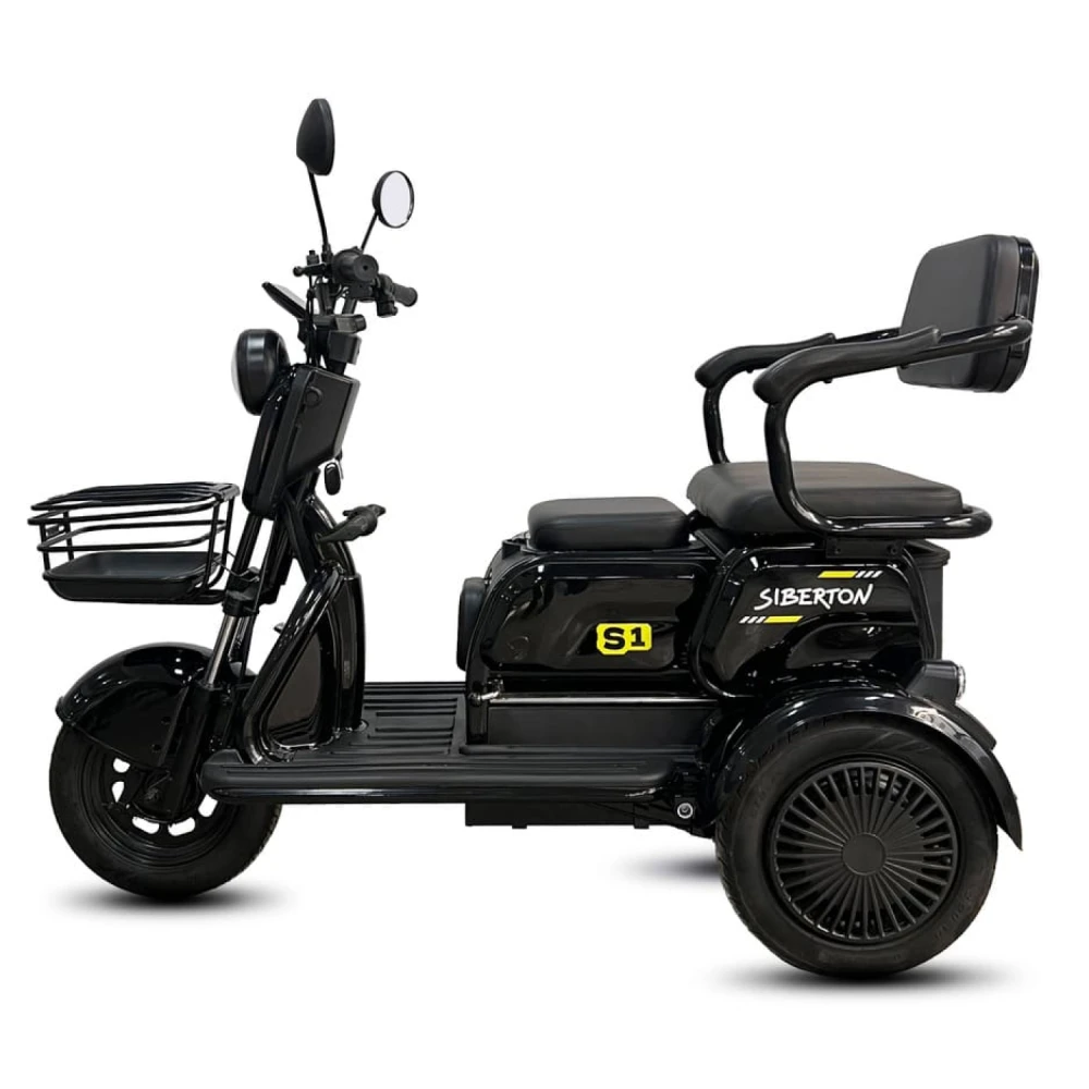 Электротрицикл Siberton S1 — компактный и манёвренный вариант для городских поездок и отдыха с мотором 2000 Вт, съёмным аккумулятором 60V 20–21 Ah и пробегом до 50 км. Эта модель сочетает устойчивость трёх колёс с лёгкостью управления, идеальна для новичков и курьеров.
