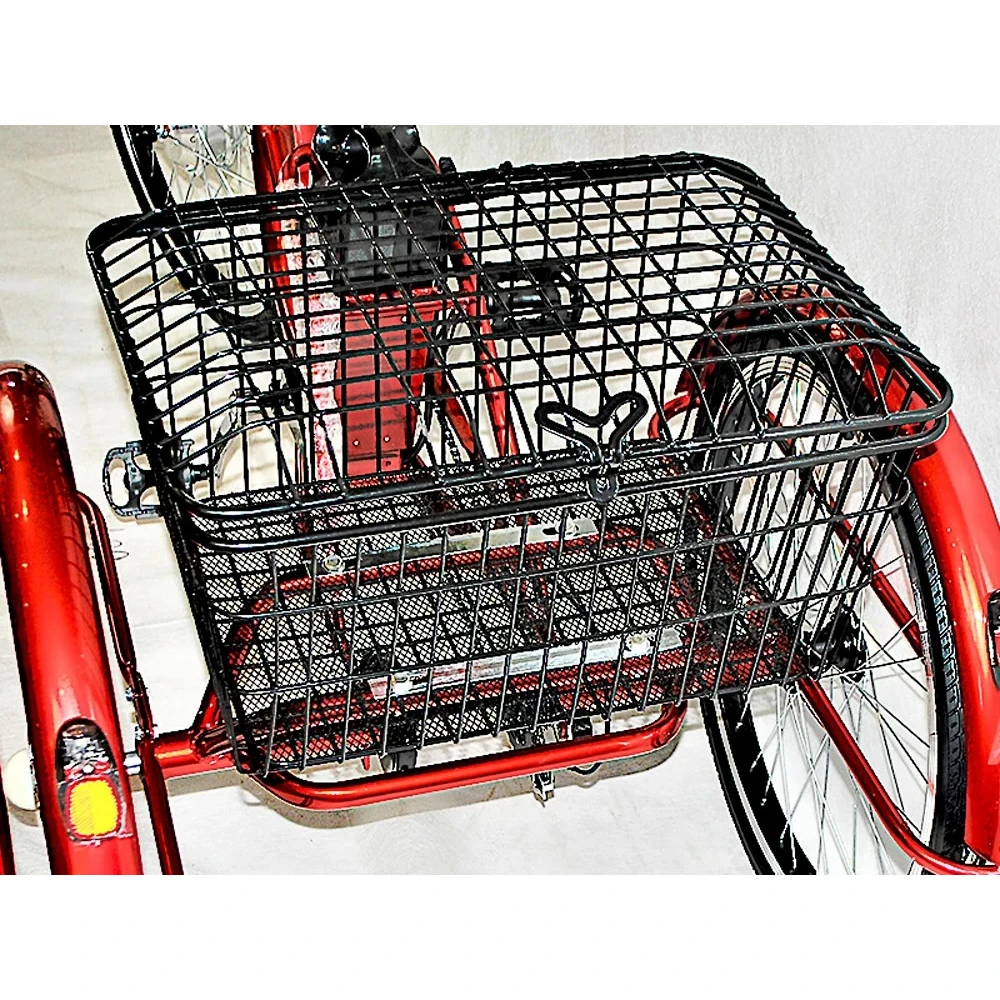 Вы сможете ездить за покупками или перевозить вещи, складывая их в съемные корзины, одна из которых расположилась сзади, а вторая - перед рулем. Большой размер колес в 24 дюйма позволит преодолевать любые ямки и неровности в комфорте.