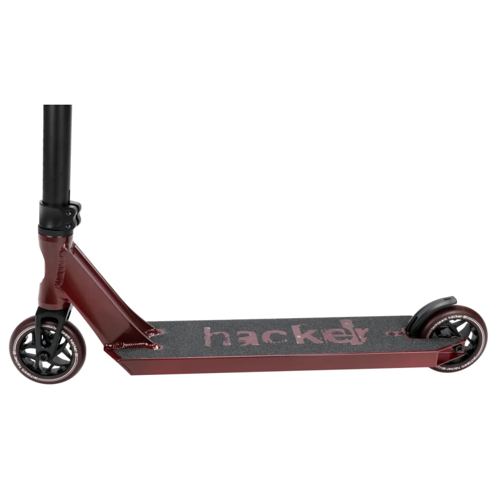 Трюковой самокат Techteam hacker 2021-го модельного года, прекрасно подходит любителям езды с ростом от 162 см вплоть до 180 см. Этот самокат обладает внушительным оснащением за свою стоимость techteam hacker может предложить деку из алюминия – шириной в 120 мм и длиной 520 мм с полезной площадью 370 мм. Имеет заваренную переднюю часть под скосом. И по тенденции моды для снижения веса была оснащена нейлоновым тормозом. Благодаря этому удалось снизить вес до 3900 грамм при этом сохранив свою прочность и надежность тормоза.