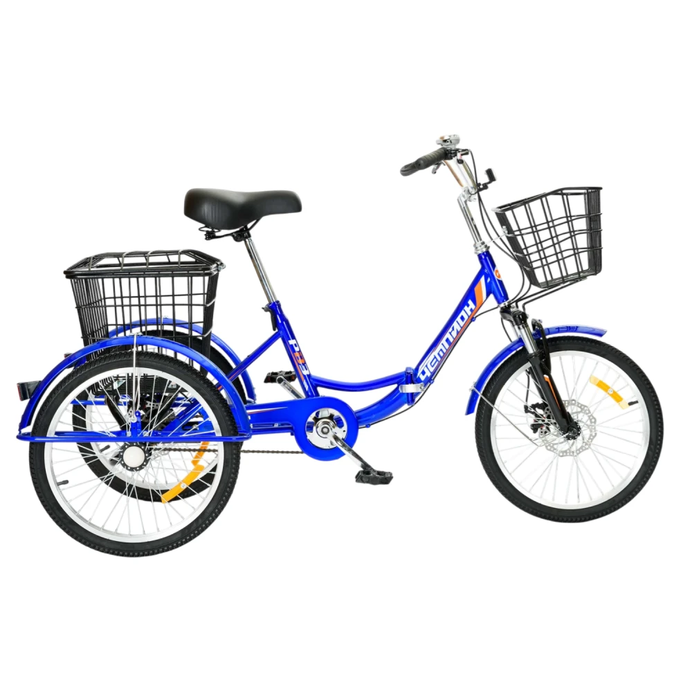 Трехколесный велосипед для взрослых РВЗ Чемпион 20" 1 скорость (складной) синий